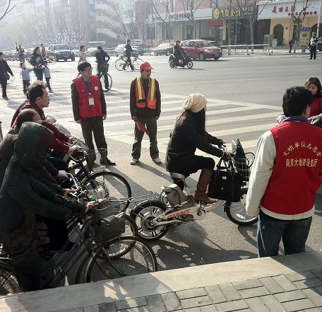 志愿者在马路上执勤