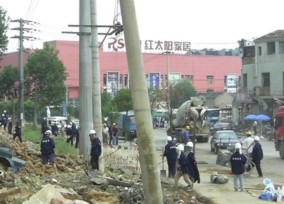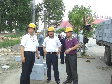 下午13:00,江中明总经理坐阵现场做了具体的布置,他亲自指挥100名队员一字排开,清理墙基、放线、调灰、搬砖拉开了抢建工作的序幕。