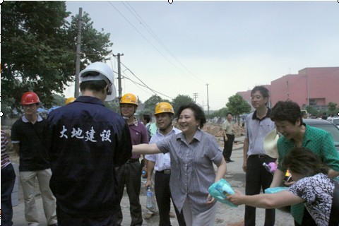 时值盛夏大暑,骄阳似火烈日炎炎。在阳光暴晒下温度高达39度以上;砖,晒得烫手,地面,热气逼人闷热难挡。每一名队员都是汗流浃背,蓝色的工装上染上了一层又一层白色的汗霜。但没有一名队员叫苦叫累。