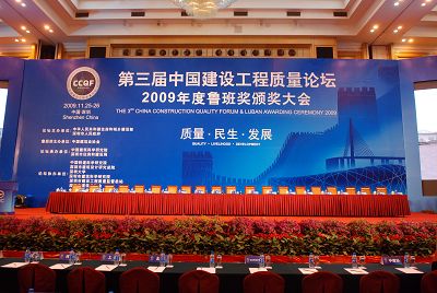 第三届中国建设工程质量论坛暨2009年度鲁班奖颁奖大会于11月25日、26日在深圳召开。原建设部副部长、中国建筑业协会会长郑一军、住房和城乡建设部副部长郭允冲出席会议并作重要讲话。广东省委常委、深圳市人民政府代市长王荣致辞,深圳市委常委、副市长吕锐锋主持会议。我平博在线官网建设集团刘亚非副总裁、股份平博在线平台江中明总经理与来自各地的获奖企业代表、各地建筑企业协会领导、各相关单位代表共1000多人出席会议。