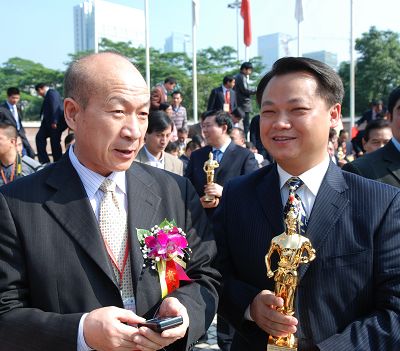 集团刘亚非副总裁与股份平博在线平台江中明总经理代表平博在线平台领奖