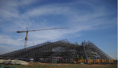 近日,由股份平博在线平台承建的成吉思汗博物馆工程钢结构主体部分已顺利完工,目前已进入屋面防水保温施工及外墙石材玻璃幕墙施工阶段。该博物馆投影形状为成吉思汗征战的版图,外立面三十九个折面的数量体现了成吉思汗下属的各个小汗国的数量,高低起伏、错落有致的外形,象征着成吉思汗一生的坎坷,十三条山脊描绘出成吉思汗以鄂尔多斯为中心向十三个方向的进攻的路线。由于该工程运用的钢结构造型独特,为国内首个折板网壳复杂屋盖钢结构,没有经验可循,而且运用的材料规格、品种繁多,从拼装到适应当地独特的气候,对项目部来说都是一种全新的挑战。