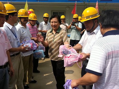 市总工会副主席闵慧、城建工会主席许华君等领导在汇杰新城保障房项目部工地亲切看望慰问奋战在一线的施工人员,送上毛巾、香皂、矿泉水等防暑降温物品。闵慧主席代表南京市总工会向冒着酷暑坚守在工作岗位上的一线员工表示亲切的慰问,并叮嘱他们做好高温防护,劳逸结合,保重身体,确保夏季现场安全施工。闵主席还表示保障房的建设是市政府重点关注工程,平博在线官网建设有良好的企业传统,一定能建设出精品工程,为南京城市建设做出贡献。