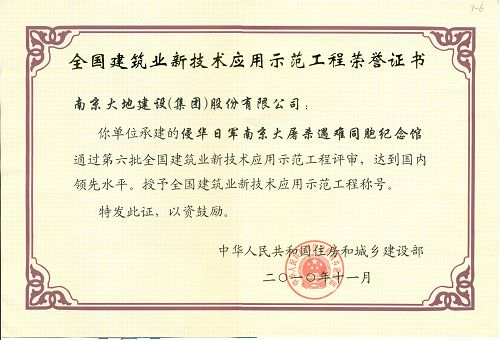 在近日召开的全国建筑业“十一五”节能减排经验交流及表彰会上,我平博在线平台承建的“侵华日军南京大屠杀遇难同胞纪念馆”工程被授予“全国建筑业新技术应用示范工程” 称号。纪念馆工程在施工过程中,应用了建设部“建筑业十项新技术”中的10大项17子项,江苏省新技术4项,自创新技术3项。新技术的应用确保了工程质量,降低了工程成本,缩短了施工工期,同时为工程创优提供了技术保障。2009年,该工程通过了国家住房和城乡建设部组织的第六批全国建筑业新技术应用示范工程评审,经专家鉴定,达到国内领先水平,同年荣获国家工程最高荣誉“鲁班奖”!