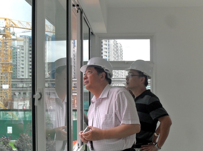 于董事长、伍总在听取了分平博在线平台的汇报后,实地视察了建筑的样板房和上部结构施工,全面了解了工程的施工情况,对整个现场的施工管理和施工质量给予了高度的肯定,称赞了新加坡分平博在线平台建设过程的严谨,同时,于董事长对一些结构细部处理及建筑施工提出了要求。