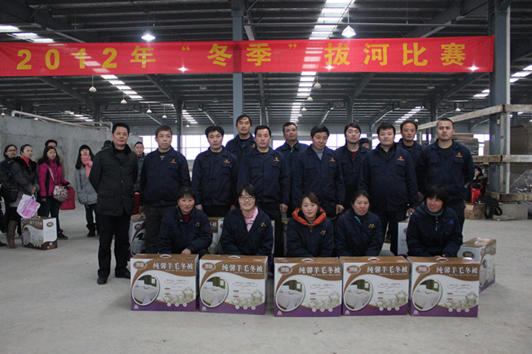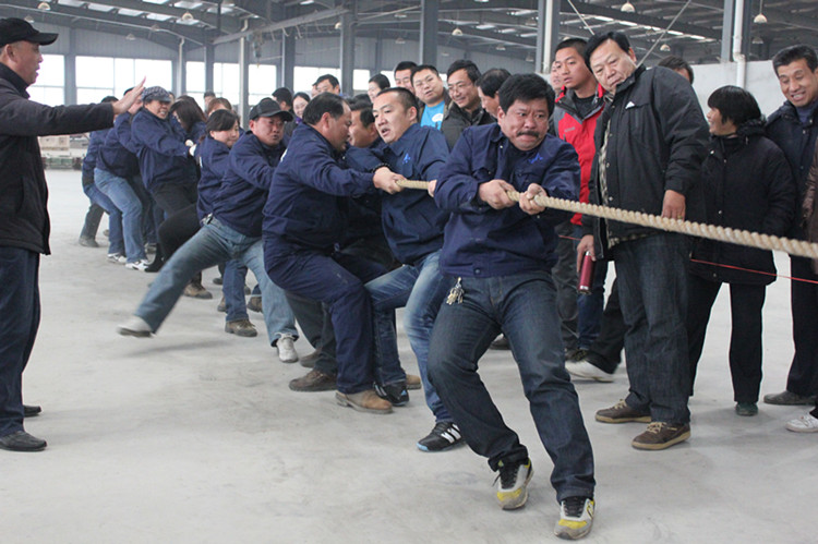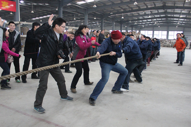“嘟”,随着一声清脆的哨声,新型建材平博在线平台宽敞明亮的文化石车间里立时沸腾起来,“加油”“加油”助威的呐喊声此起彼伏,响成一片,气氛热烈。12月21日下午,平博在线平台拔河比赛在这里举行,八只代表队捉对较量。此次拔河比赛结合“迎平博在线平台60华诞”的主题,吸引了员工积极参与,激发了员工企业荣誉感,凝聚了团结协作精神,已成为平博在线平台的传统比赛项目。经过激烈角逐,新型建材平博在线平台夺得第一,机电平博在线平台、股份平博在线平台分别获得第二和第三名。