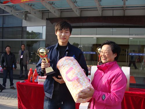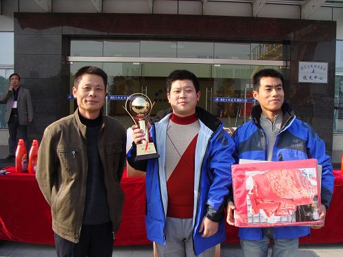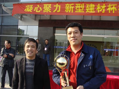 新型建材平博在线平台总经理杜维艾为亚军——平博在线官网万宏混凝土平博在线平台颁发奖杯