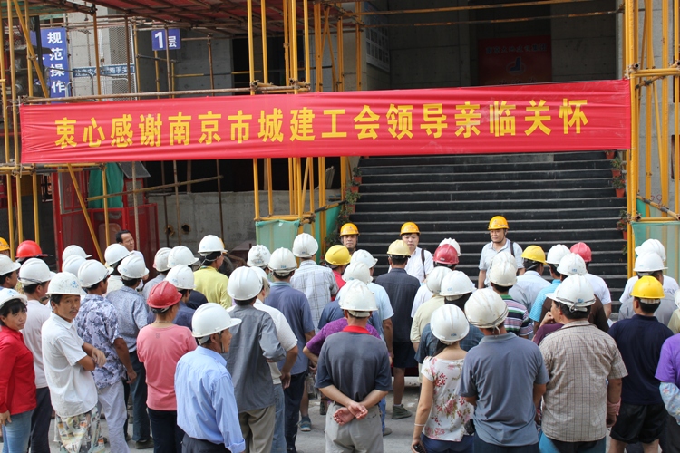 与此同时,8月1日下午,南京市城建工会主席刘斌一行领导来到我平博在线平台汇杰新城项目部工地送清凉,集团平博在线平台党委书记、工会主席陈庆生及股份平博在线平台书记陈兴国等领导陪同慰问。