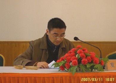 图为财务总监伍贻安同志在作财务工作报告