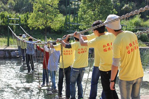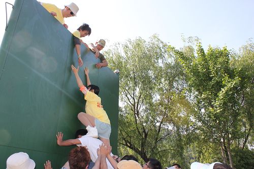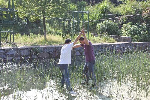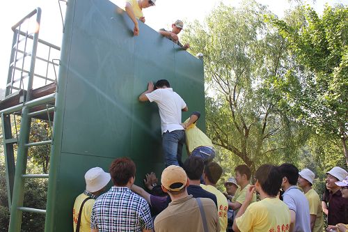 活动中,40多名队员分成了“雄狮特攻队”、“射手队”两个队,在教练的指导下,在各队队长的带领下,队员们团结一致、齐心协力地共同挑战完成了“丛林CS对战”、“合力过桥”、“翻墙求生”等三个竞技项目。这些项目有的考验团结协作、有的体现相互信任、有的挑战个人潜能……。两个队你追我赶,难分上下,每位队员积极参与、紧密协作,大家团结一心,群策群力。每完成一个项目,教练都会及时讨论总结,进行启发和引导。通过这些极富有挑战性的体验式活动,使队员们不断挖掘自身潜力,实现自我超越;亲身感受到团结、奉献、协作、信心、责任等要素对团队成功的重要性;增强了团队的凝聚力和计划的执行力,促进了相互沟通和交流。