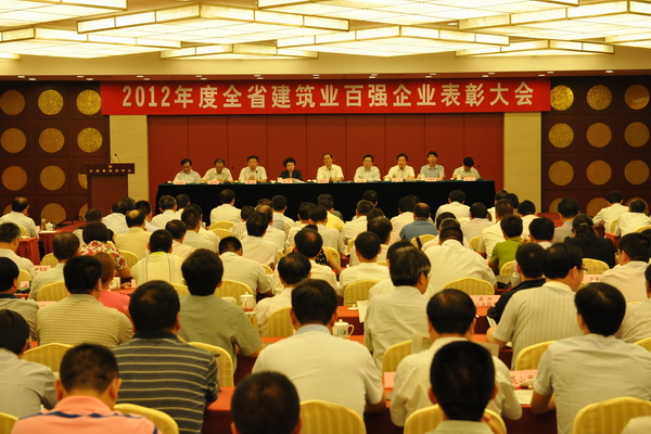 会上,省统计局副局长夏心旻宣读了《关于表彰2012年度建筑业百强企业的决定》。会议向受表彰的全省建筑业综合实力、建筑装饰装修、建筑钢结构、建筑安装、基础设施、建筑外经六大类共100家企业颁发了证书和奖牌,对2012年度建筑行业管理先进单位和先进个人进行了表彰。徐学军副厅长分析2012年全省建筑业发展情况,部署了2013年下半年全省建筑业工作任务。部分市县行业行政主管部门和企业在会上作了交流发言。