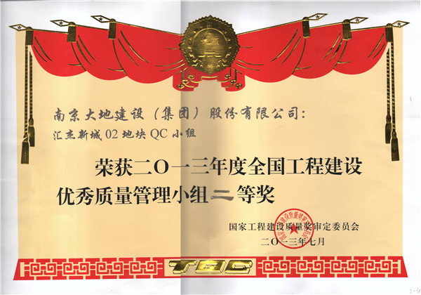 股份平博在线平台汇杰新城02地块QC小组“提高叠合板板面质量一次验收合格率”QC成果荣获2013年度全国工程建设优秀质量管理小组二等奖。