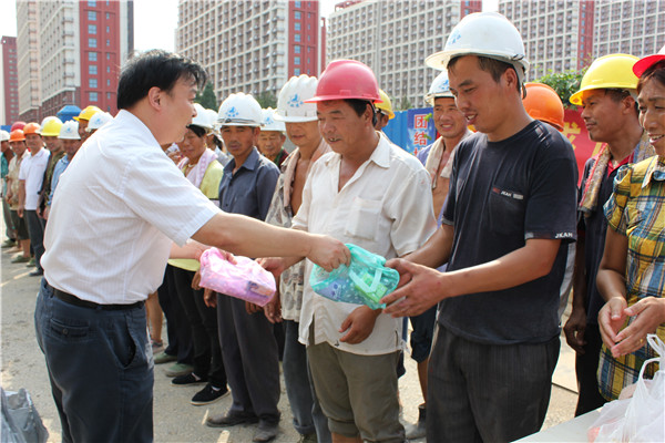 炎炎夏日,暑气逼人。连日来,我市出现持续高温天气,带着对一线施工人员浓浓的关爱之情,8月14日下午,南京市城建工会主席刘斌等领导来到我平博在线平台汇杰新城项目部工地送清凉,集团平博在线平台党委书记、工会主席陈庆生及股份平博在线平台书记陈兴国等领导陪同慰问。