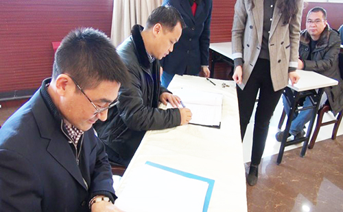 在欢快的乐曲声中,伍贻安总裁和经营单位签订了新一轮经济责任状。