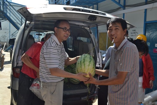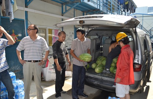 慰问中,苏总要求各级领导积极发挥作用,把防暑降温工作落实到每个工地、每个班组、每个岗位和每个职工个人。要广泛开展形式多样的“关爱职工、夏送清凉”活动,把党组织的关怀、领导的关心爱护送到每一位职工和农民工朋友们的心坎上,共同抵御高温、平安度夏,保质保量抓好各项工程建设,确保工程如期竣工交付。