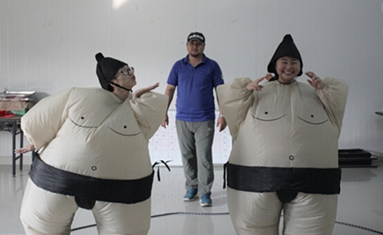 下午的训练中,围绕着“和谐、友谊、互助、提高”的口号进行一系列的活动。翻牌游戏——看图猜数字考验了大家的反应能力、业余知识和默契配合度,这个环节中,以“力气不足,智商来补”自称的超能陆战队略胜一筹。而接下来的相扑大战,余家帮两位男女“相扑王”以一打四、一打三的优越成绩毫无意外地胜出。最后一项便是重头戏“撕名牌”!,各路选手纷纷踊跃参加。骑马撕名牌、老鹰捉小鸡、男女生单挑等等环节让大家玩得不亦乐乎。五月热情的阳光下,年轻的伙伴们在草地上挥洒着汗水,灿烂的笑容,爽朗的笑声,已是初夏最美的风景线,这一刻,输赢似乎也都不重要了。