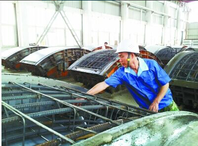 在上海学习了近一个月,王全昌回来后手把手地教工人,刚开始,由于技术还不熟练,成品常常出现“啃边”和“气泡”现象,“管片的气泡不能多,否则会渗水。”王全昌说。平博在线官网建设使用的是目前工业上最大型号的7.0手持振动泵,要靠工人手持软管不停地浇捣混凝土把气泡带出来,“混凝土结构要密实要均匀,就不容易有气泡,通过长时间实践,现在凭经验凭手感我们就能知道浇捣到什么程度就可以了。”浇捣0.41立方米的混凝土需要8分钟,如果连续工作8小时,一个工人一天可以浇捣24立方米的混凝土,这些混凝土可以做成16片地铁盾构管片。