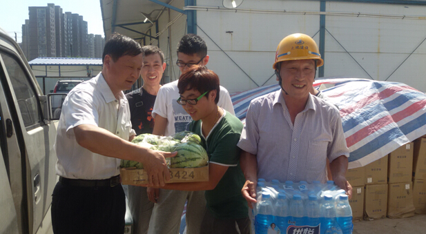 酷暑考验着我们的一线员工,更牵动着平博在线平台领导们的心。近日,由机电安装分平博在线平台总经理郭应华带队,苏东副总经理、综合管理部、安全部一行五人组成的高温慰问小组顶着烈日,迎着热浪,带着西瓜、矿泉水和防暑降温药品开展了为期一天半的高温慰问活动,重点慰问了尧辰路、中电熊猫、政法、万成、圩村、杨庄G40等项目部。