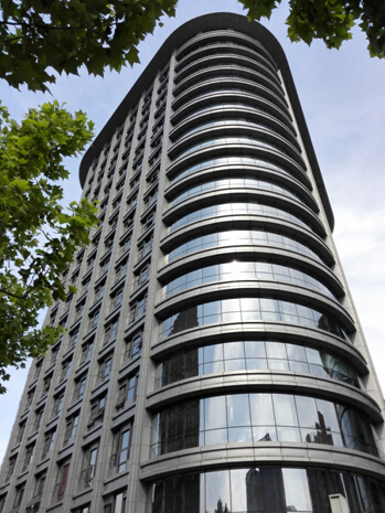 框架玻璃幕墙、铝板幕墙总计约22890m2,表面平整,胶缝横平竖直、宽窄均匀,弧形曲线线条优美。四性检测满足要求,无渗漏。