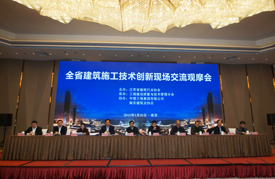1月20日,由江苏省建筑业协会组织召开的全省建筑施工技术创新现场交流观摩会在南京青奥中心双塔楼项目现场举行。省住建厅纪迅副巡视员、市住建委朱家祥副主任、省建筑业协会于国家副会长等领导及全省各市建筑业协会代表、建筑企业主要技术管理人员参加了本次观摩会。