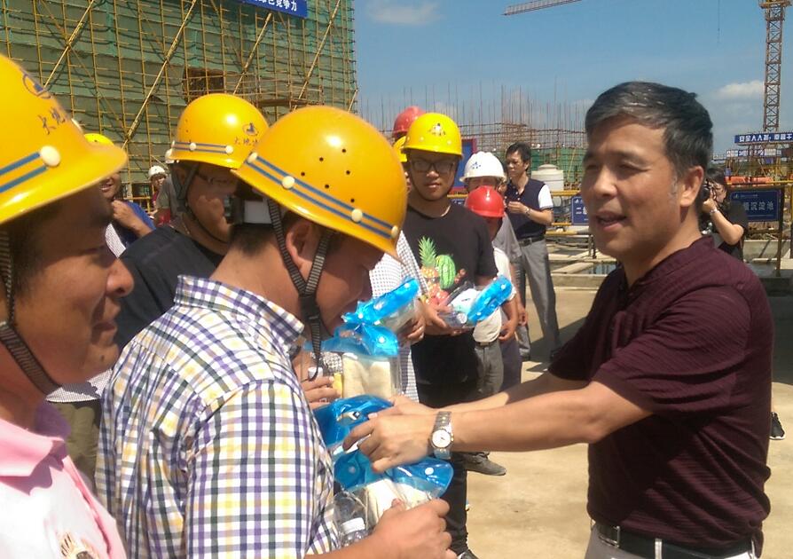 出梅后,南京进入持续35-38C度的高温天气。股份平博在线平台各项目部高度重视防暑降温工作,合理安排工作时间,工人们挥汗奋战,高温下坚守。高温牵动着集团和股份平博在线平台领导的心,7月29日、8月2日两天集团平博在线平台和股份平博在线平台领导顶着烈日,到股份平博在线平台尧辰路项目、世贸项目、溧水项目等工地慰问一线员工,开展夏季送清凉活动。