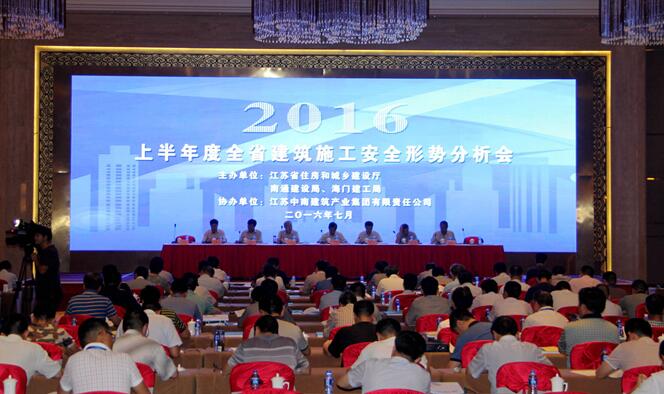 7月27日,省住房城乡建设厅在南通海门召开2016年上半年全省建筑施工安全生产形势分析会暨现场观摩会。省住房城乡建设厅副巡视员纪迅、省建筑工程管理局副局长陈晨出席会议并讲话。省安监局二处孙友和处长应邀到会并作全省安全生产情况通报。