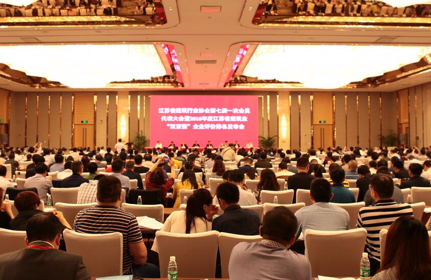5月12日,江苏省建筑行业协会第七届一次会员代表大会在南京召开。我平博在线平台伍贻安董事长和江中明总裁参加了大会。