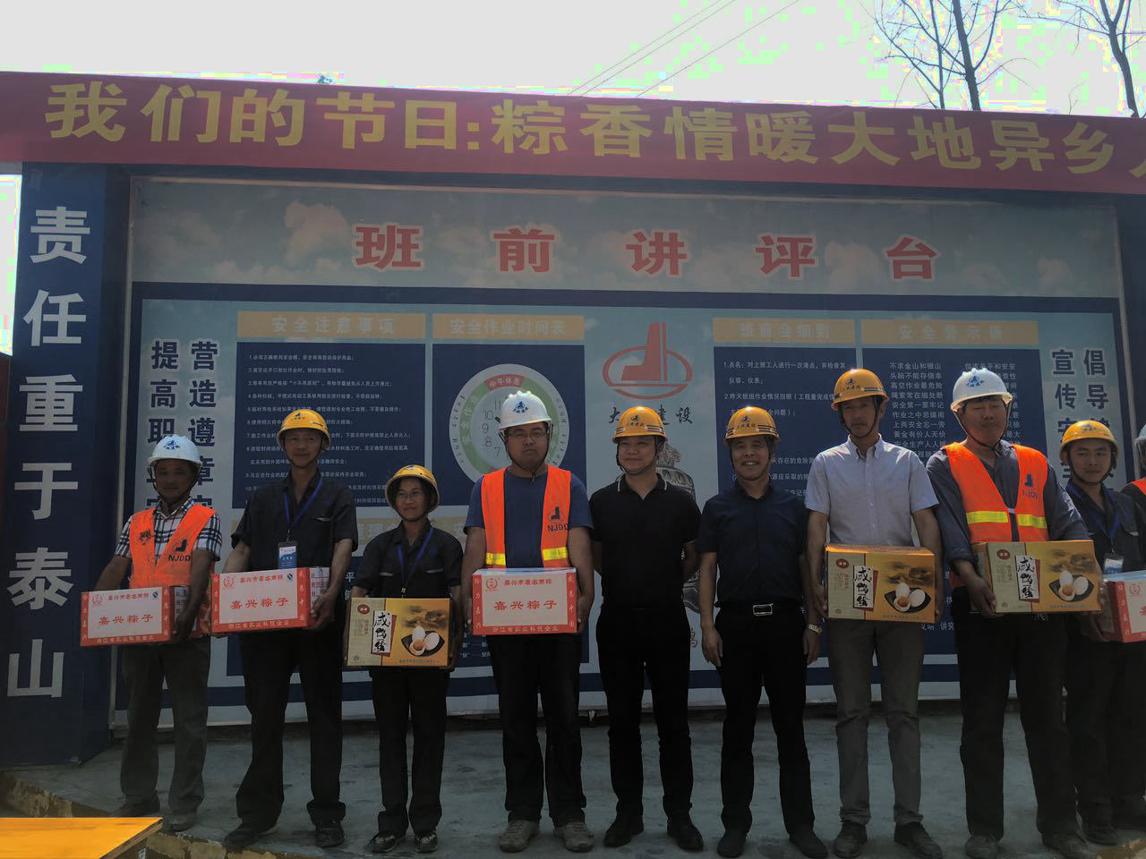 端午节前夕,集团平博在线平台就“我们的节日·粽香情暖平博在线官网异乡人”为主题开展了端午慰问施工现场人员的活动,并准备了粽子、咸鸭蛋等慰问物品。5月27日下午由集团平博在线平台总裁江中明及党委书记陈庆生同志带队,股份平博在线平台相关领导陪同前往浦口区桥林柳岸听莺景苑小区保障房工地对工作在一线的员工进行了慰问,亲手送上节日慰问品,转达了集团平博在线平台的问侯和祝福。总裁还仔细检查施工现场并询问了工程进展情况、人员的生活情况,关心大家要注意劳逸结合,注重安全生产。