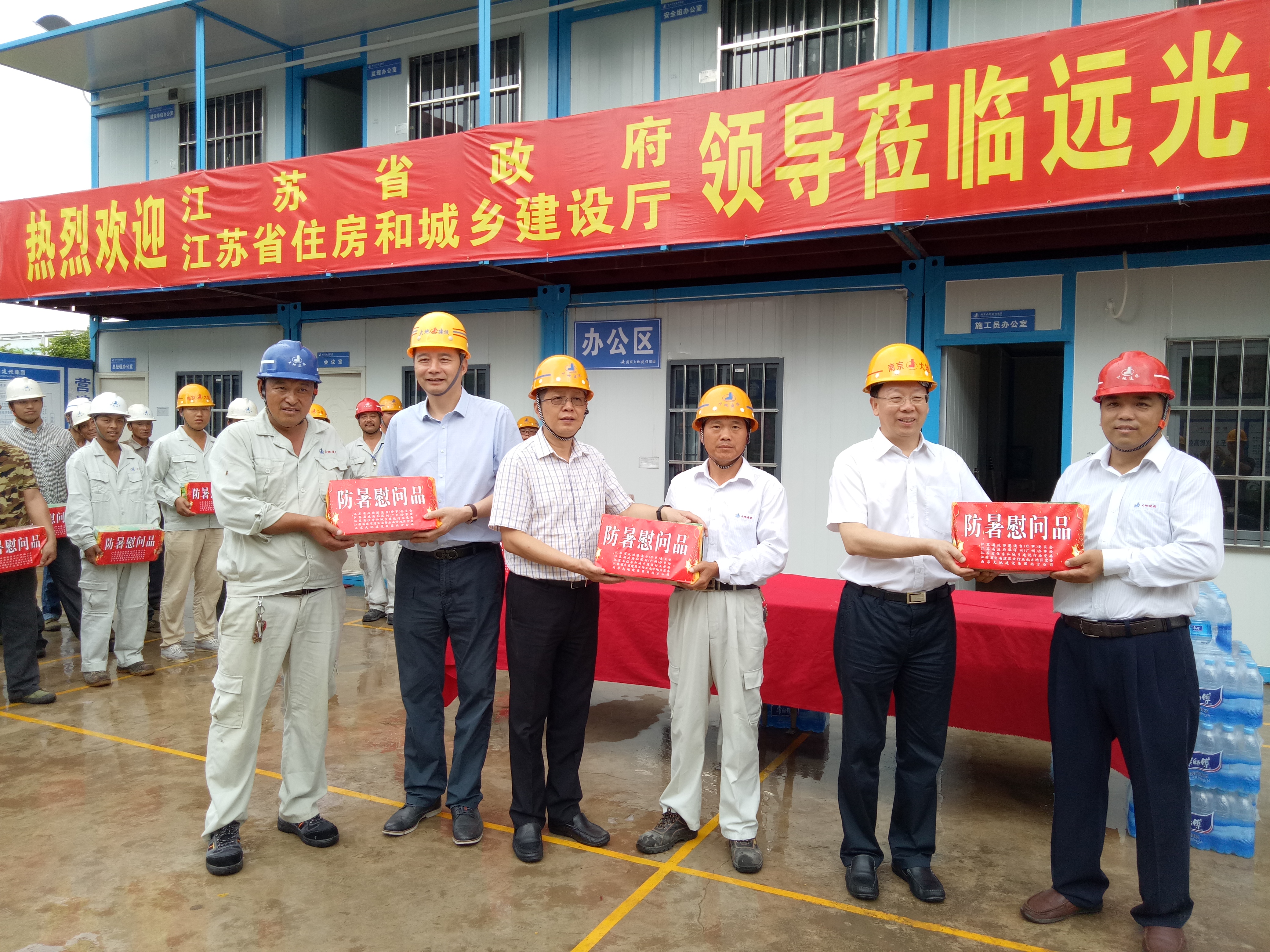 最后,检查组向一线工人发放了防暑慰问品,并嘱以亲切的关怀。现场工人兄弟都非常感谢上级组织对基层工人的关心,炎炎夏日,大家脸上都洋溢着感怀的笑容。