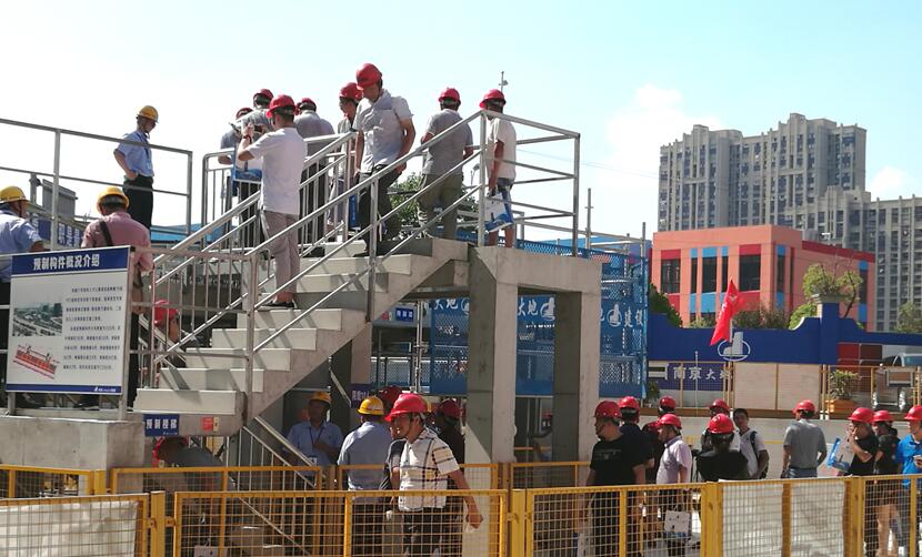 观摩以浦口区巩固六号地块人才公寓项目装配式建筑技术为示范工程。项目总建筑面积3.5万平方米,该项目主体结构采用装配式混凝土结构,内外墙体采用ALC板,一体化卫浴系统,成品房、预制率达51.66%,装配率达71%。标准化设计,土建与装修一体化,采用BIM进行深化设计、信息化管理;项目设计与施工整合实现了标准层施工无外脚手架、无外模板、无现场砌筑的绿色施工。