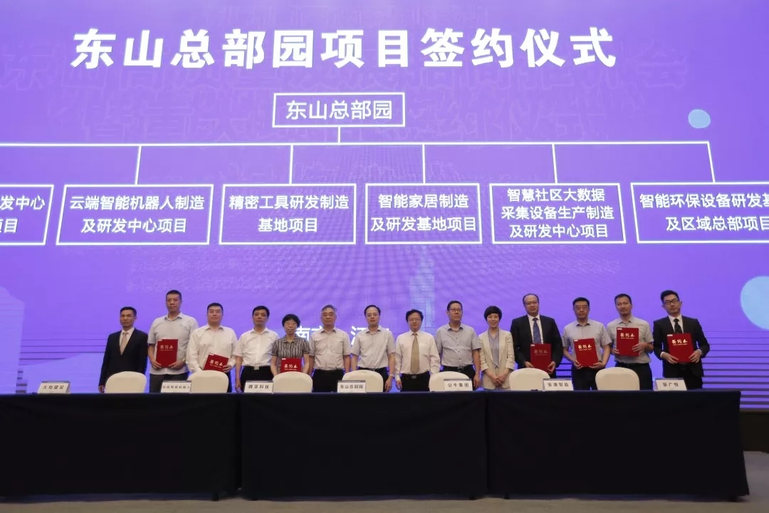 2019年6月27日上午,集团副董事长于春代表集团出席2019南京创新周·东山高质量发展招商推介会暨重大项目签约仪式。作为六个重大项目之一,集团平博在线平台联合南京工业大学共同筹建的绿色智慧建筑研发中心及智造基地项目,与东山总部园现场签约。