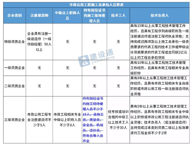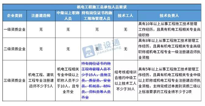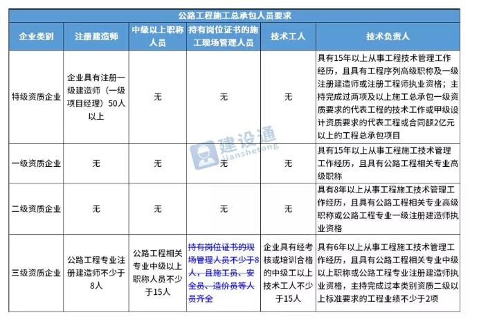 换句话说,并不是所有企业资质都不要求有建造师等企业人员。施工总承包三级资质企业对建造师等人员仍有要求,一级资质、二级资质企业保留技术负责人这一项要求,特级资质另有规定。