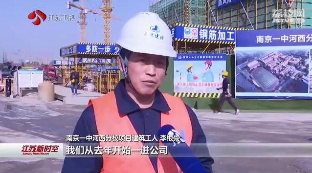 江苏台记者:我现在是在南京一中河西项目的实名制通道,大家看到我手上拿的是一张实名制的市民卡,在这里每一位工人需要刷卡才能进去工区,同时在我身后的显示器上也会显示每个人的工种和到岗信息。