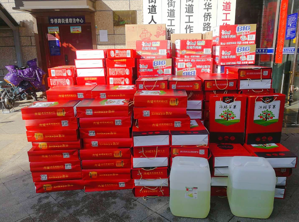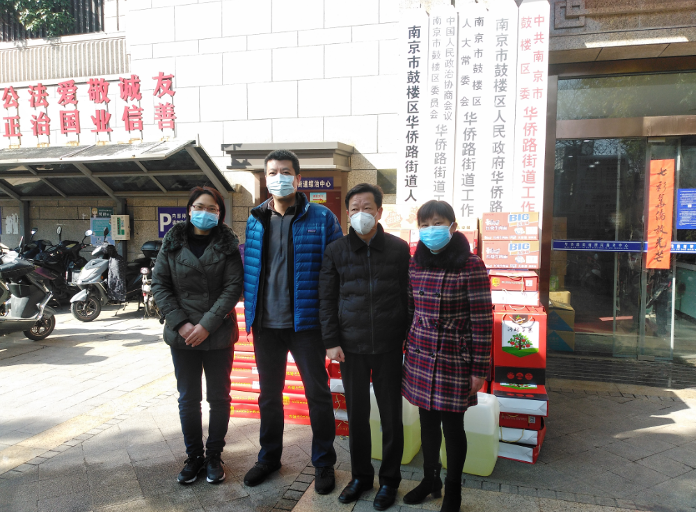 2月10日,复工首日。集团党委书记于春代表南京平博在线官网建设集团来到鼓楼区华侨路街道向工作人员表示感谢和慰问,并送上牛奶,水果,方便食品等慰问品和消毒液助力街道防疫工作。