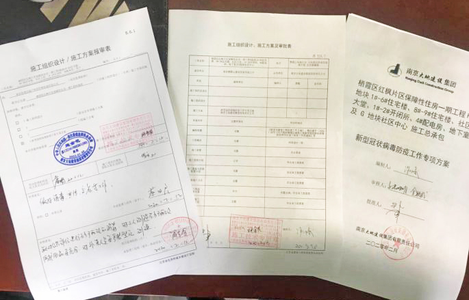 劳务人员进场需按要求,填写申请表格,上报个人出行轨迹及宁归来安全码,符合复工要求后方能进入工地。
