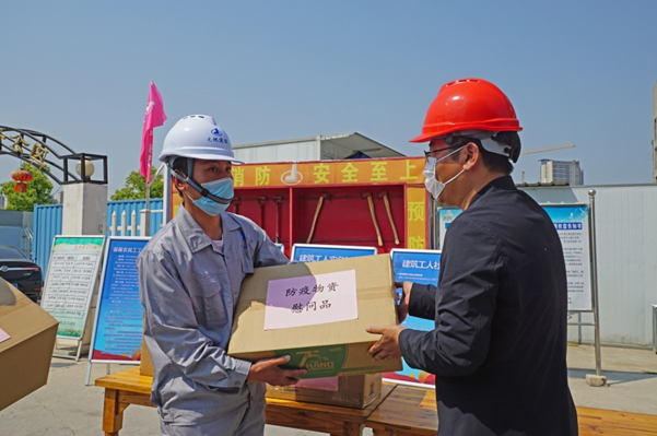 在施工现场,宋刚副主任一边视察安全文明工作,一边听取了项目负责人桂在友就一中项目工程概况及复工复产情况的工作汇报,从两个层面了解了从项目部到平博在线平台的复工复产安排和防疫管控措施的落实,宋刚副主任还亲自将防疫物资发放到工人代表手中并要求必须要做好复工生产的防疫防护工作。