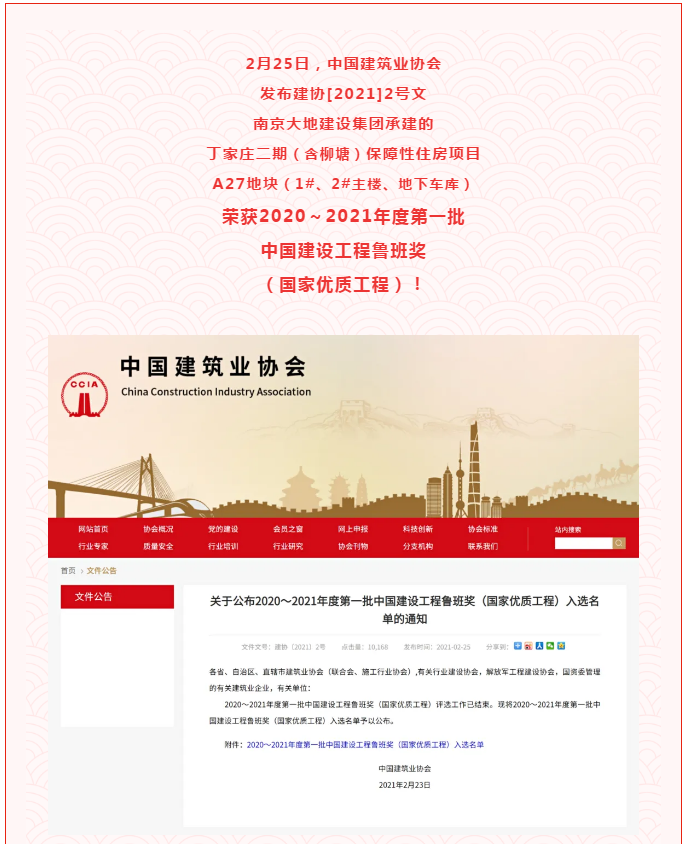 喜讯 | 南京平博在线官网建设集团再获“鲁班奖”!