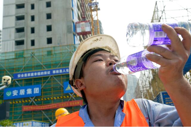 建筑工人孙学九告诉扬子晚报记者,他主要负责运送建材等工作,由于高温暴晒,建材表面十分烫手,拉上一两百斤的建材前往施工现场不一会便会全身湿透。