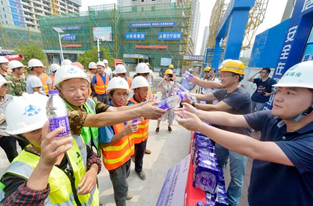 看见挥汗如雨的工人,南京中天酒业有限责任平博在线平台总经理丁亮说:“在这酷暑难当、气温节节攀升的季节,你们一如既往坚守在各自岗位,顽强拼搏、攻坚克难,为我们城市建设付出了巨大艰辛和汗水,向你们致敬!”
